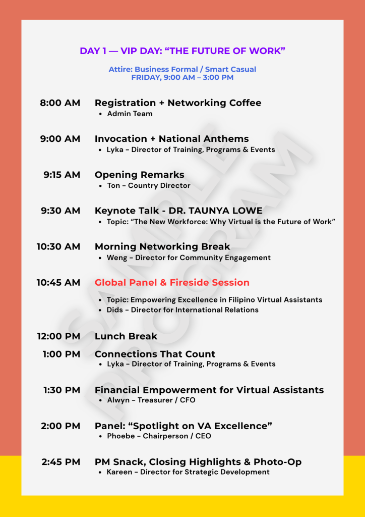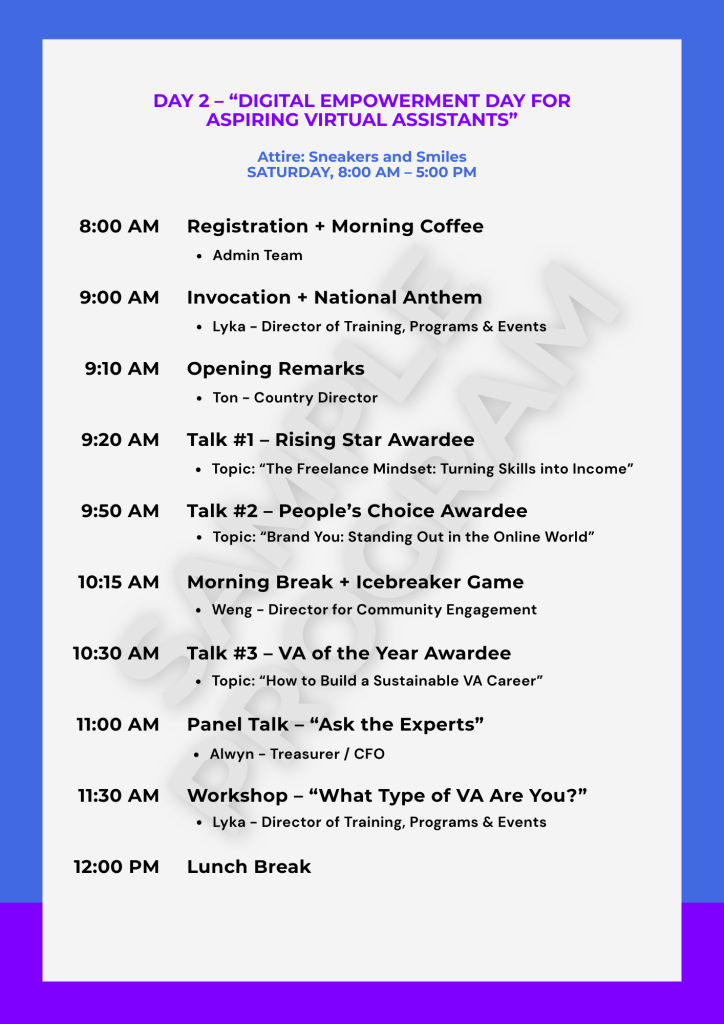 Through your sponsorship, you’re not just supporting events — you’re fueling opportunities for aspiring Virtual Assistants, solo parents, out-of-school youths, and differently-abled individuals to build meaningful digital careers.